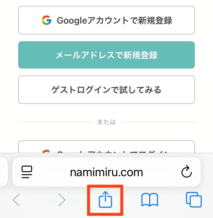 ナミミルは他のアプリと同様にホーム画面に追加できます。